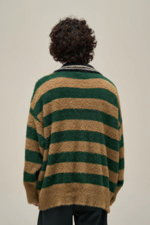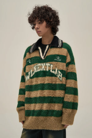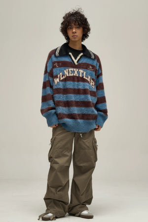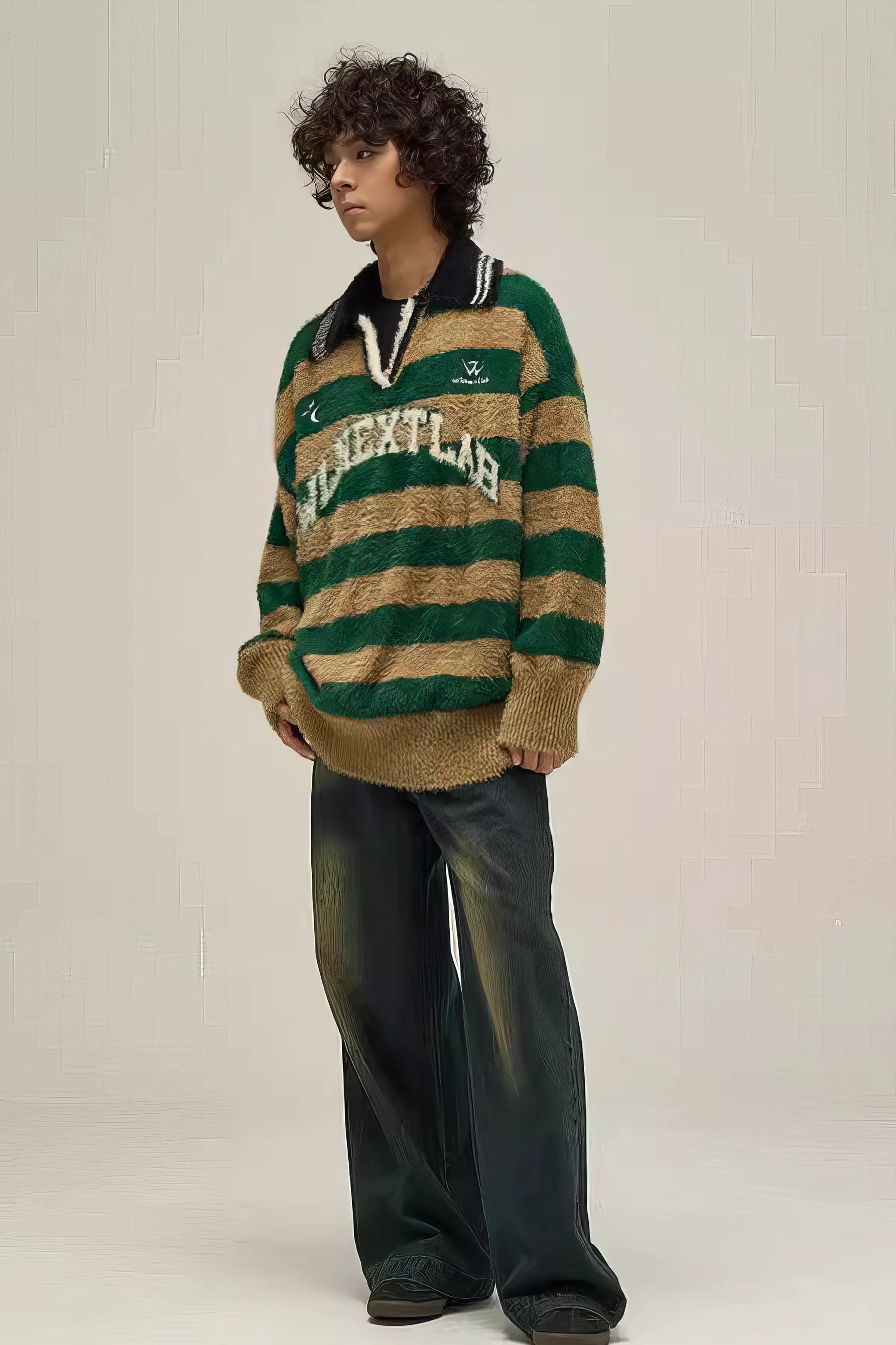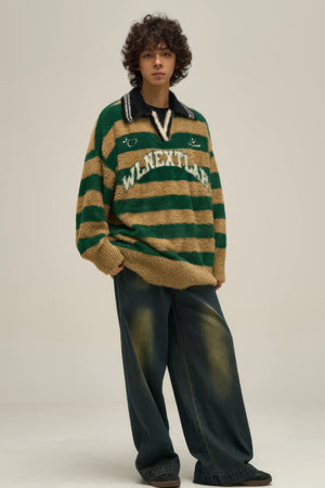 En hyggelig, oversized striktrøje med et amerikansk-inspireret design, perfekt til afslappet komfort og afslappet stil.