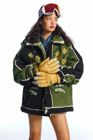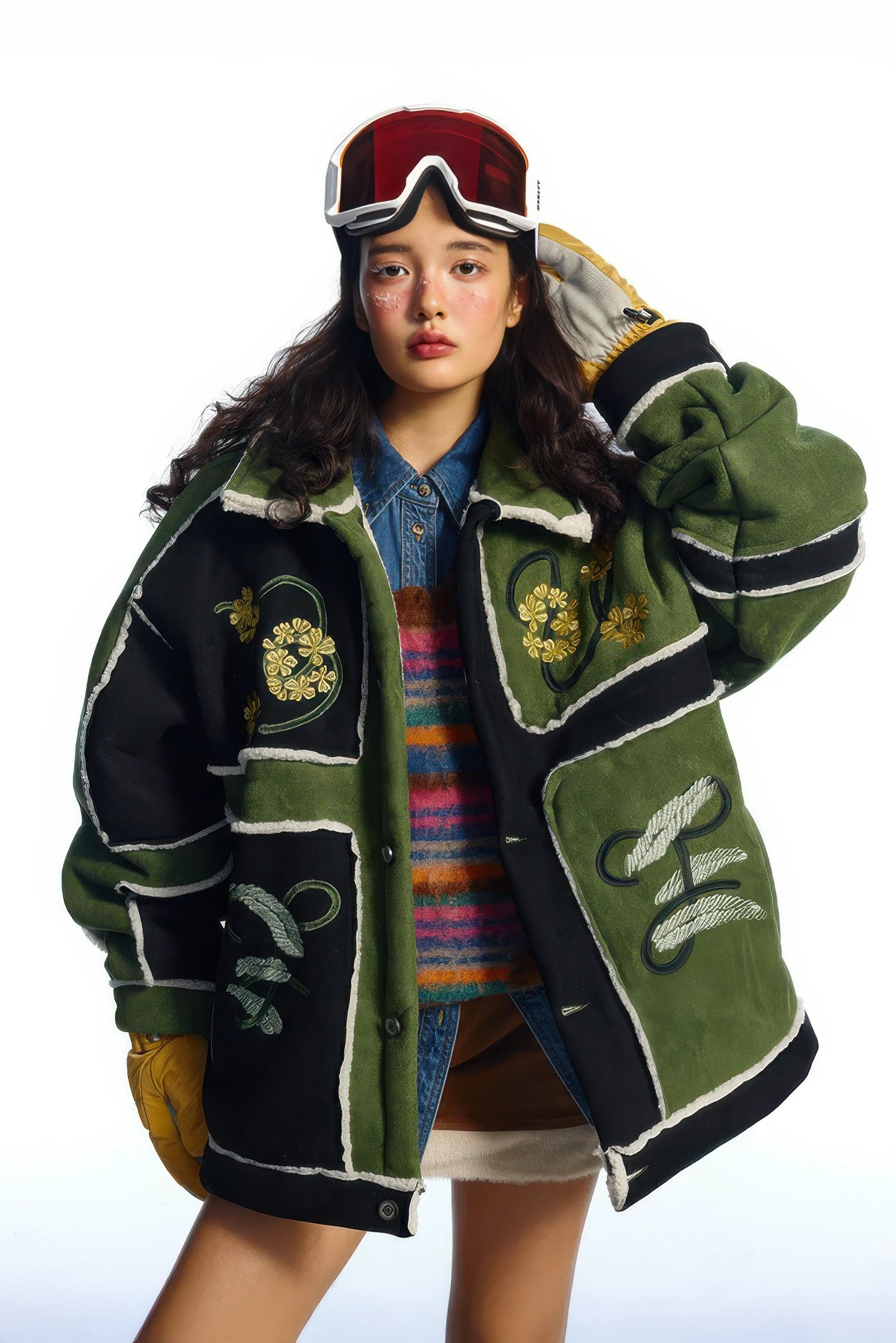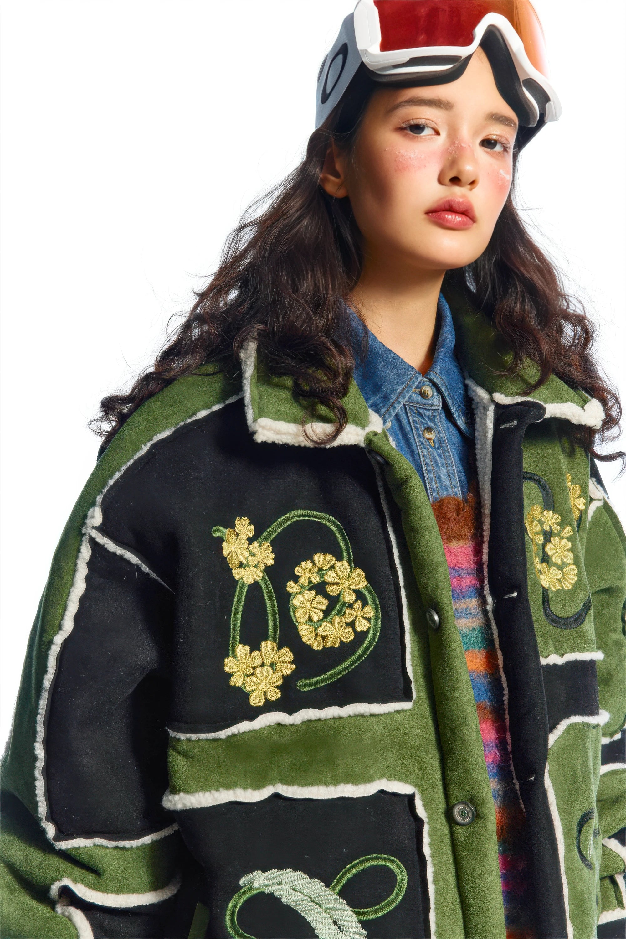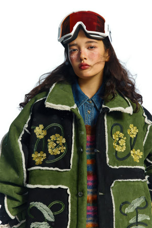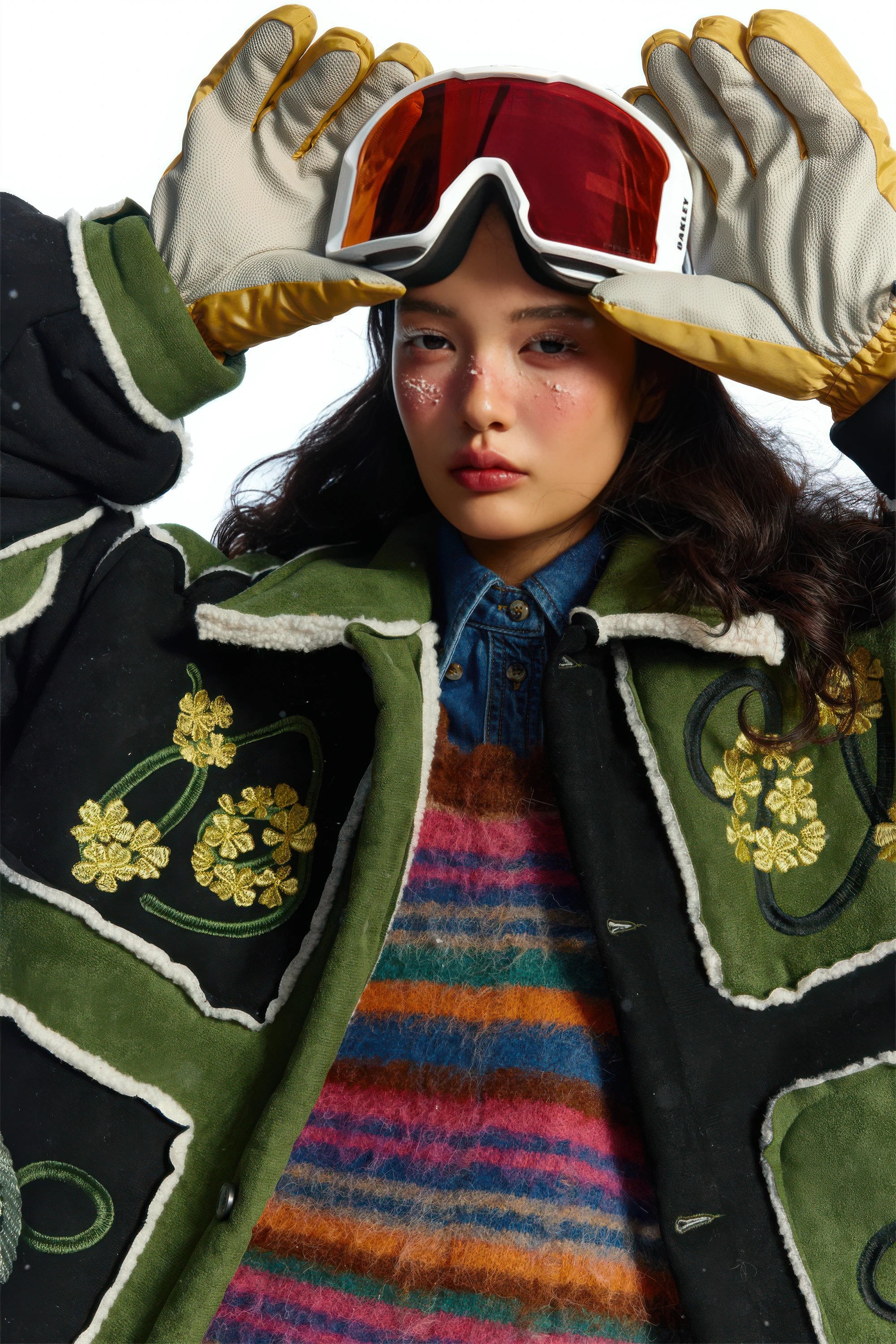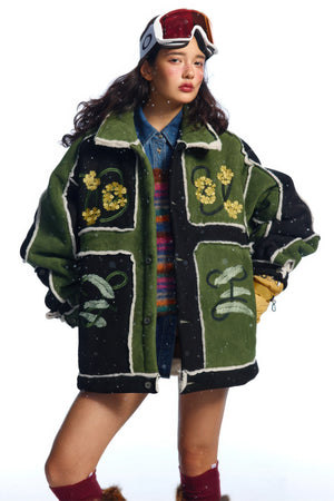ג'קט שרפה אוניסקס עם רקמת פרחים - כותנה בצבעים משולבים