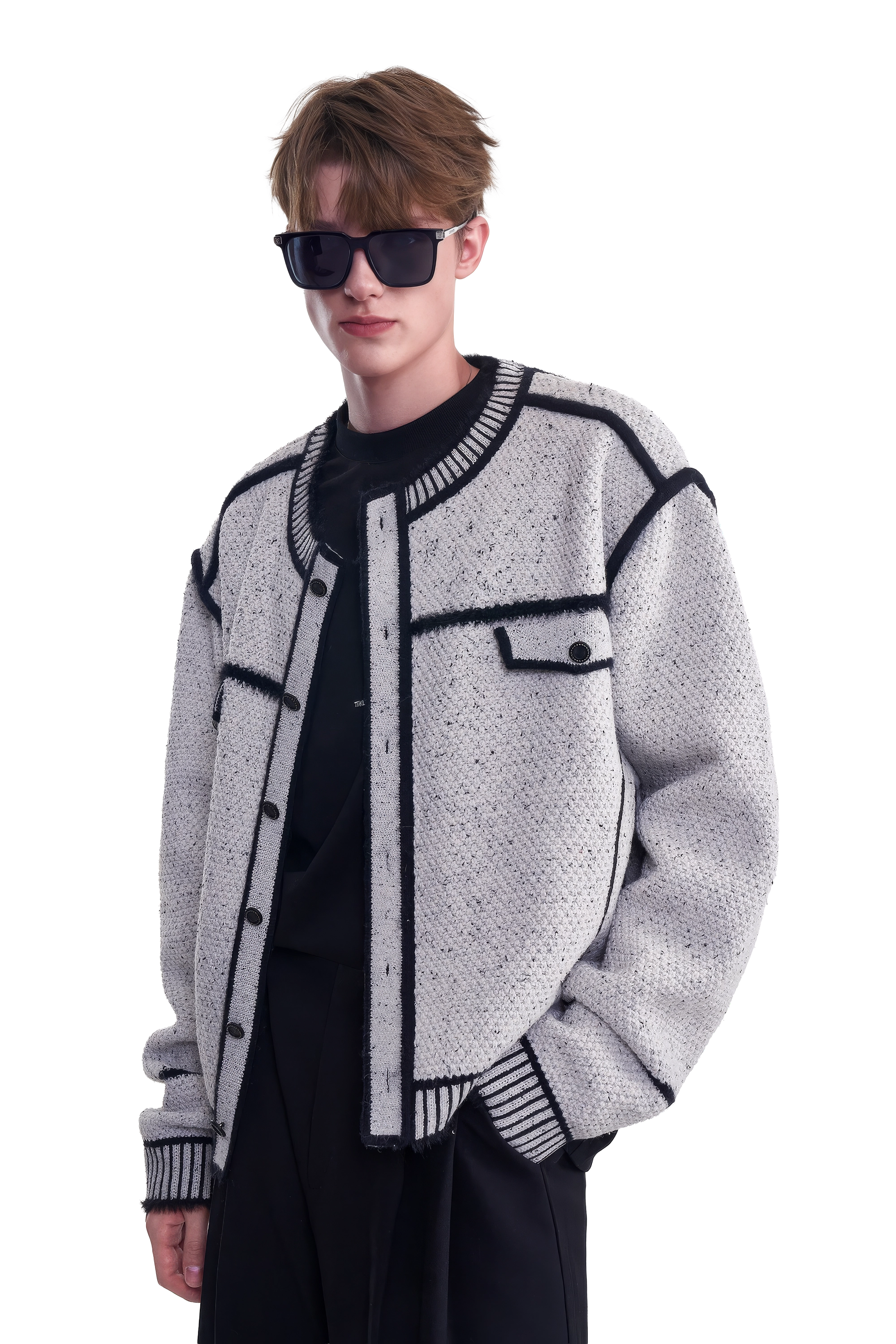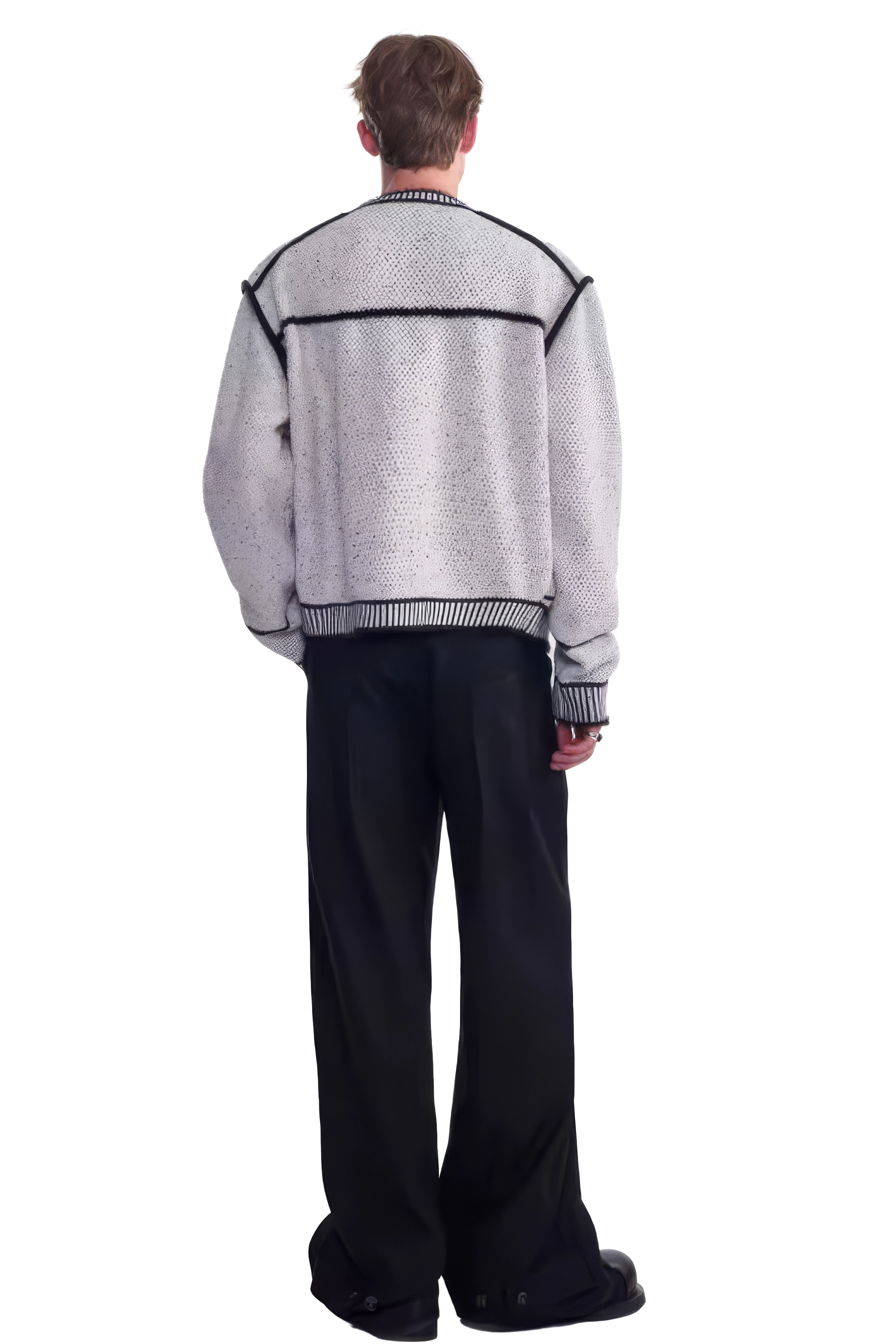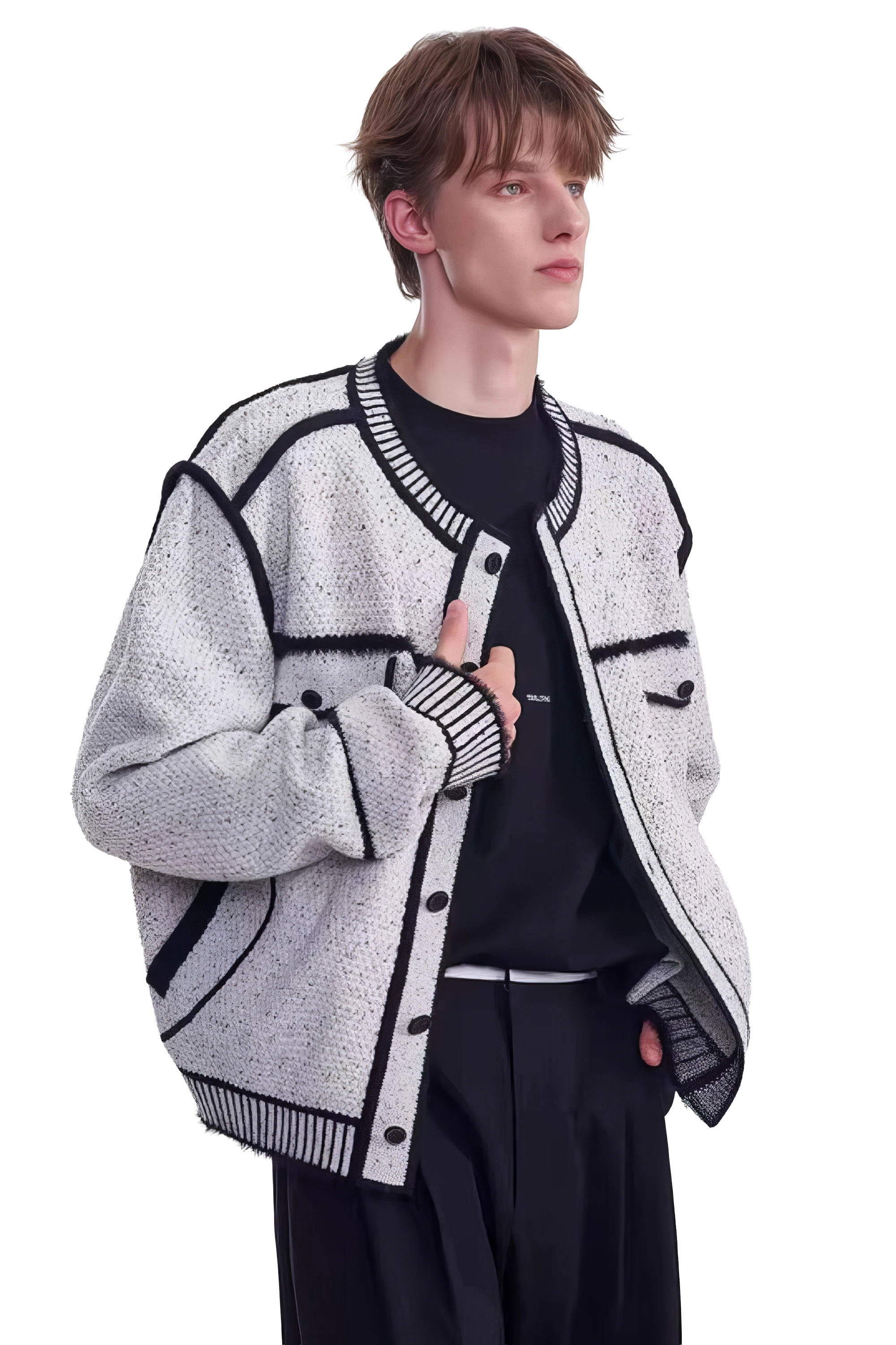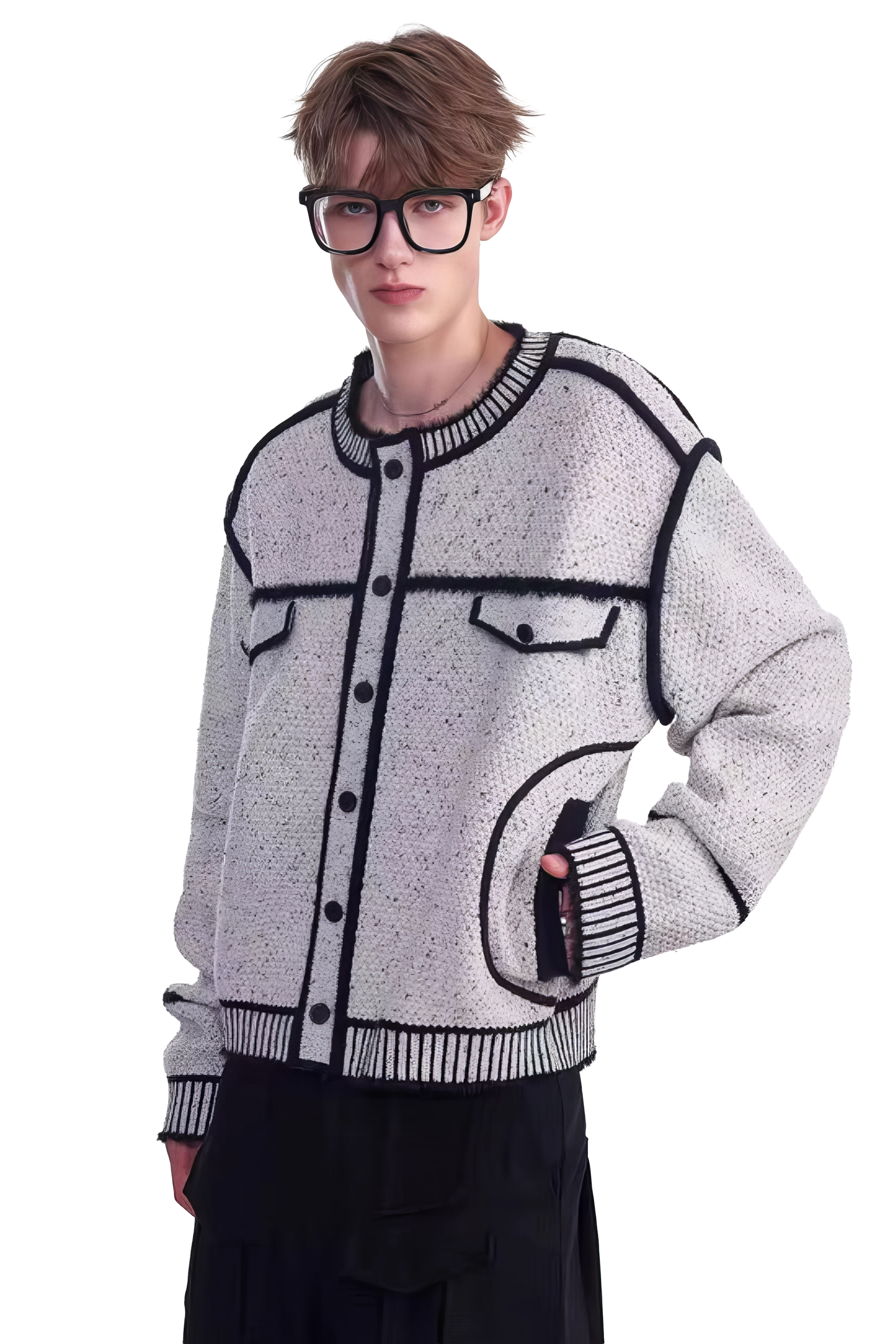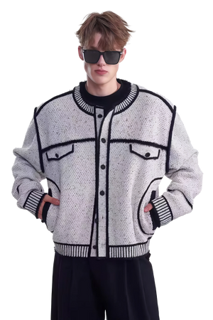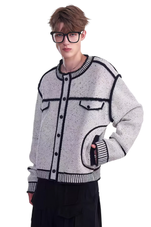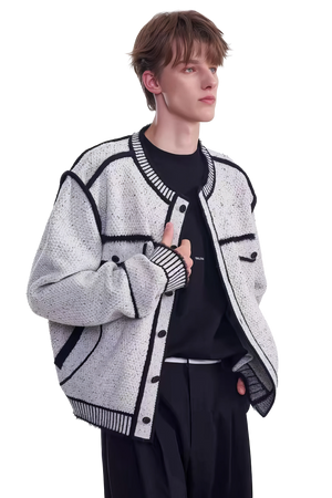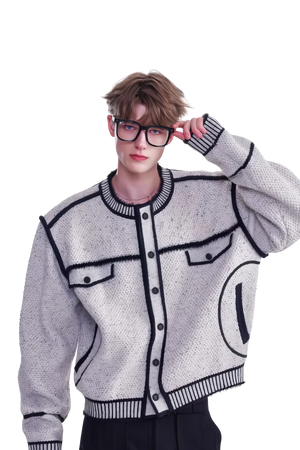 メンズ冬用ニットセータージャケット マーカーペンデザイン – 創造的なマーカーペンデザインが特徴のユニークでスタイリッシュなセータージャケット。温かさと快適さを追求して作られ、ファッション性と機能性を兼ね備えたこのジャケットは、冬のワードローブに最適な一品です。