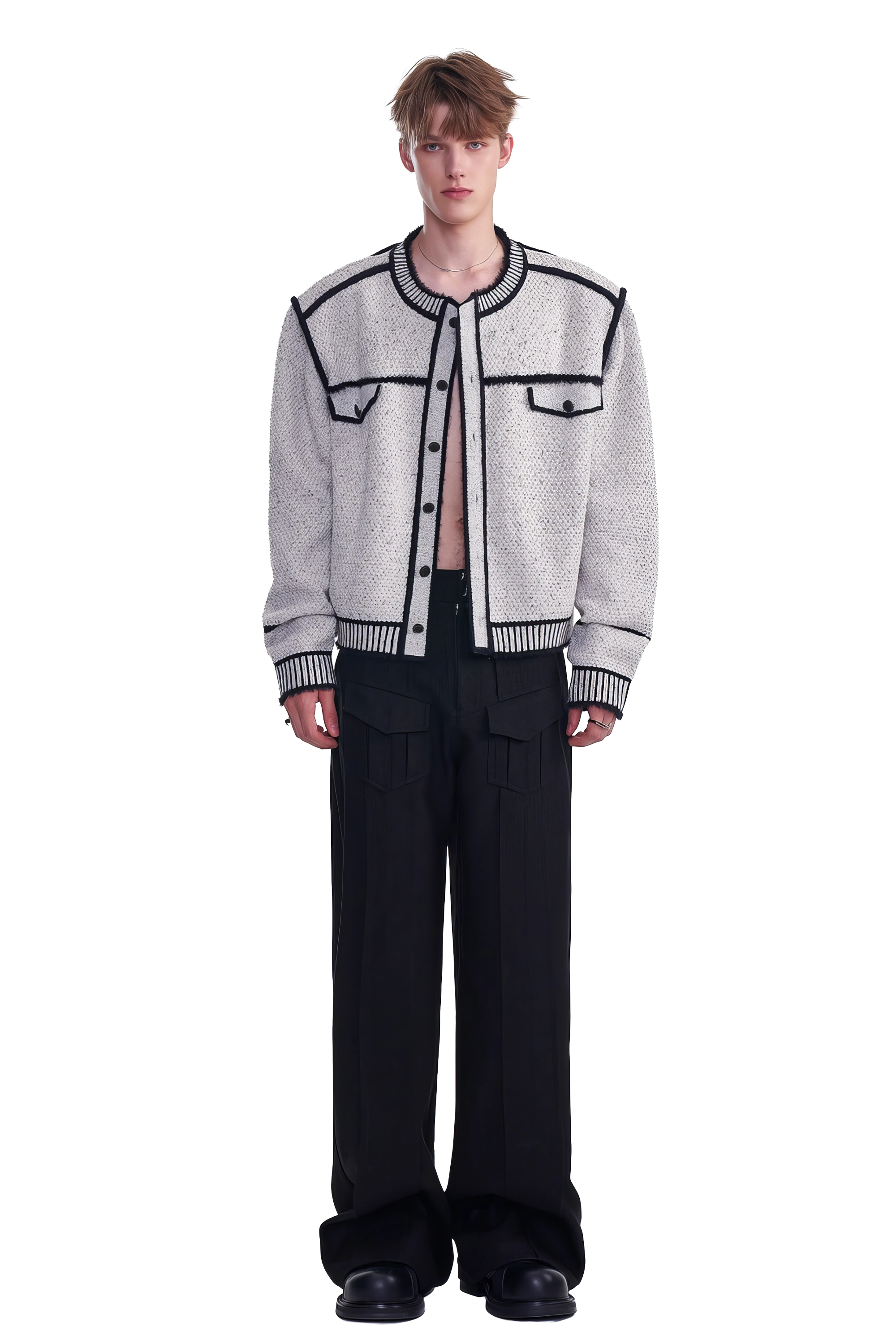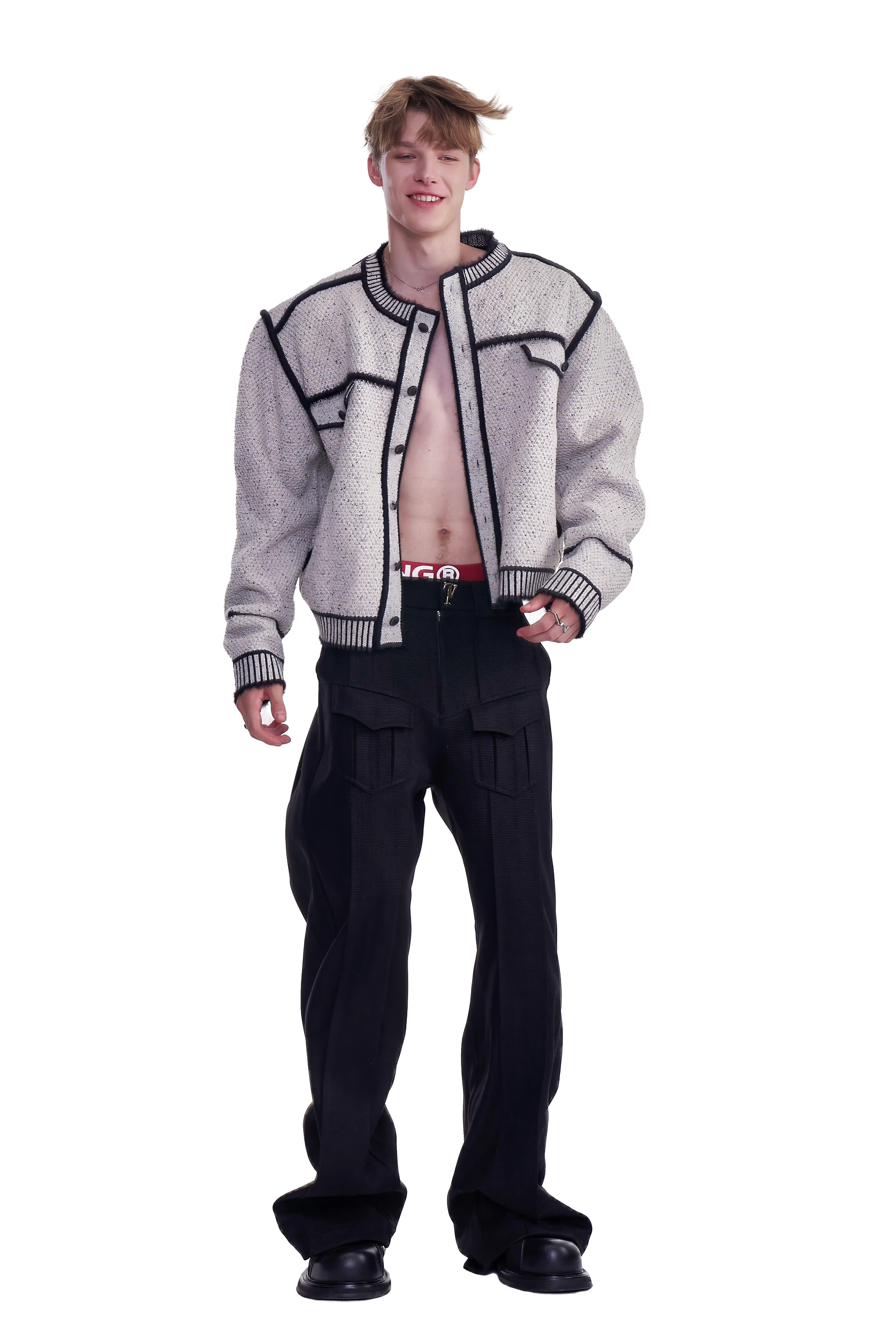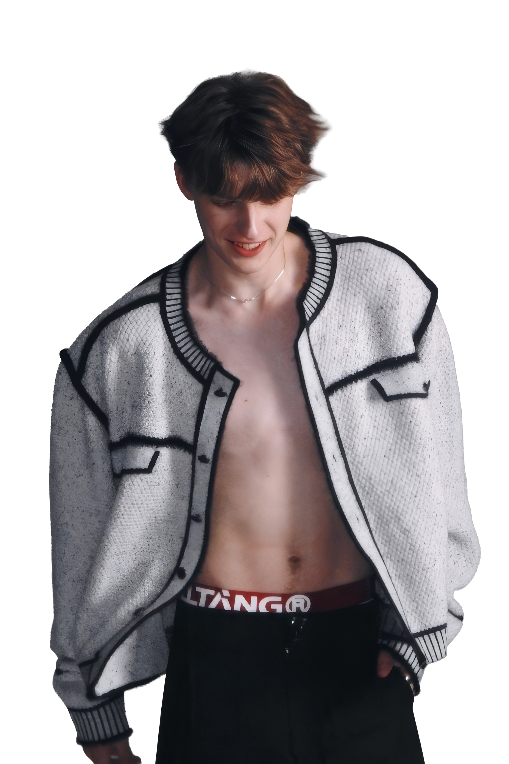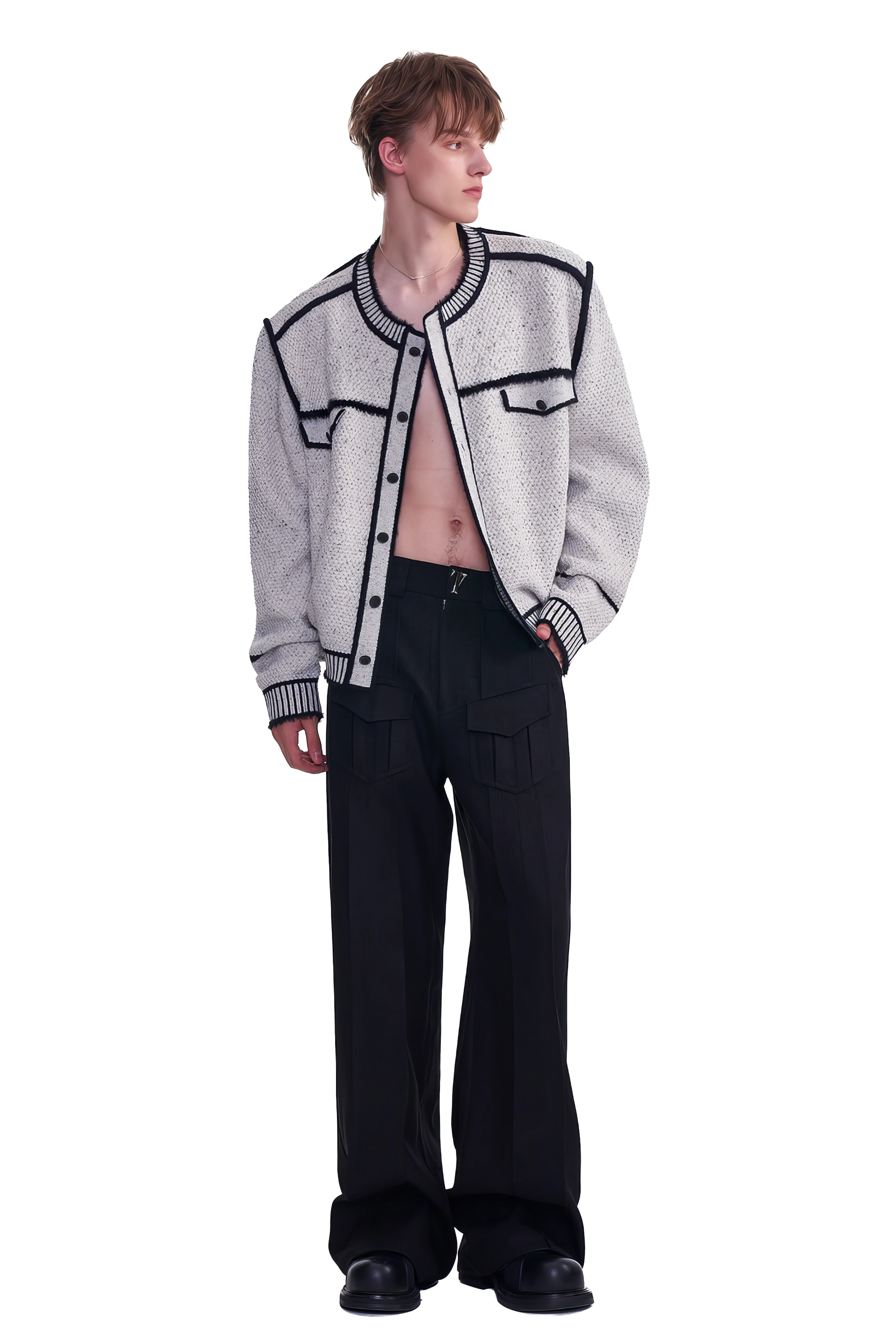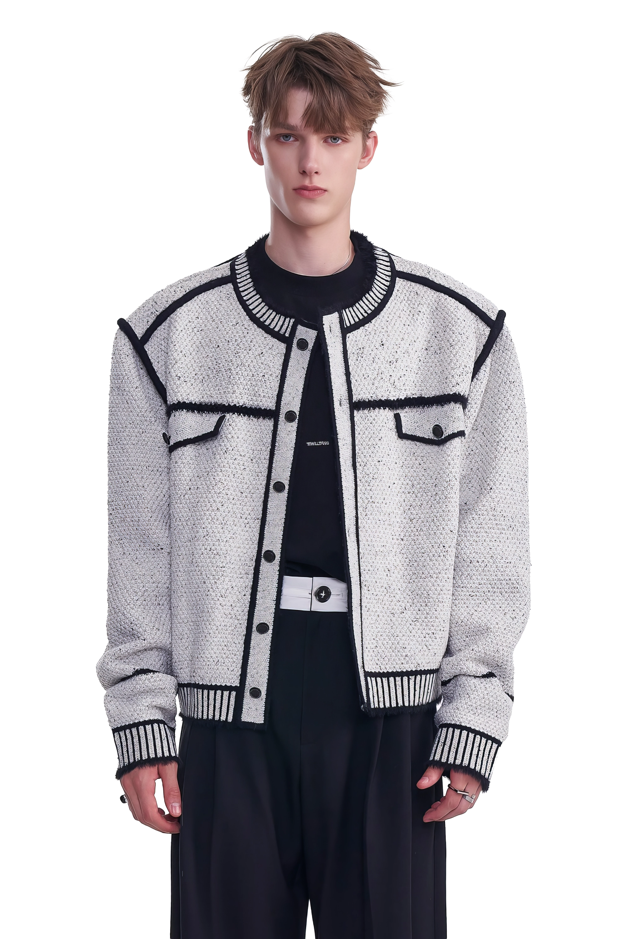 メンズ冬用ニットセータージャケット マーカーペンデザイン – 創造的なマーカーペンデザインが特徴のユニークでスタイリッシュなセータージャケット。温かさと快適さを追求して作られ、ファッション性と機能性を兼ね備えたこのジャケットは、冬のワードローブに最適な一品です。