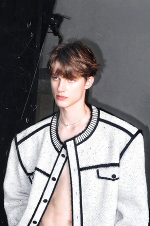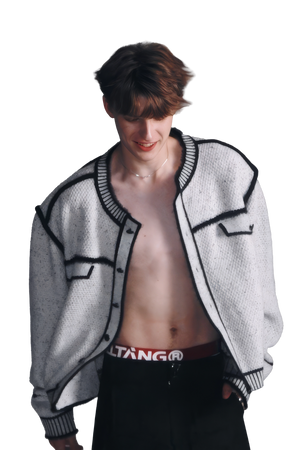 マークペンデザインのニットスウェットジャケット