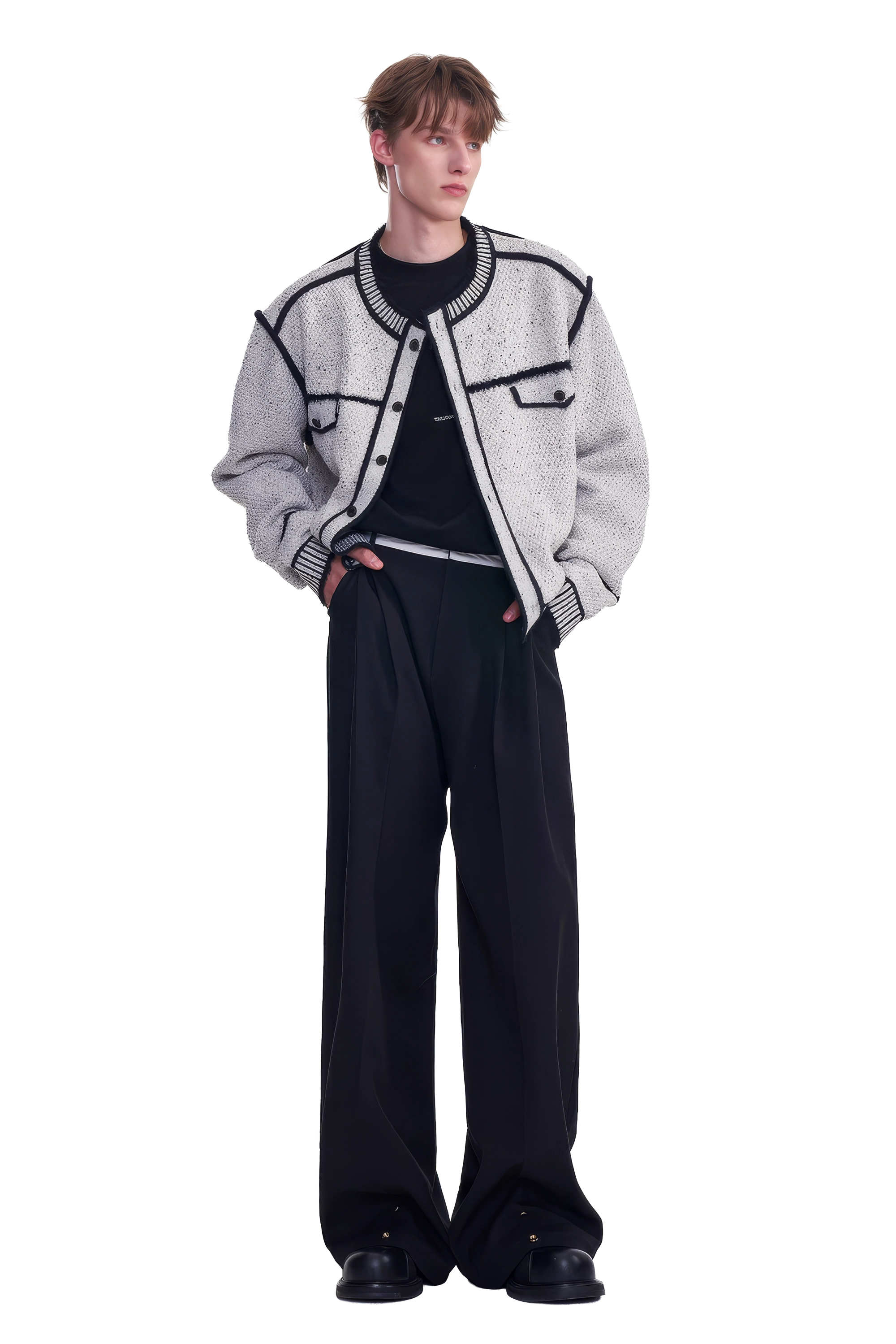 生地には高品質なウール混紡素材を採用しました。この生地は触り心地が柔らかく快適で、優れた保温性を発揮し、肌にフィットして快適な着用感を提供します。