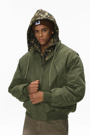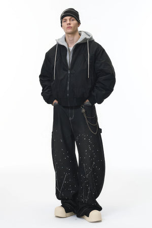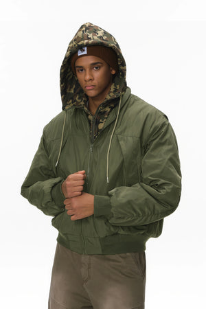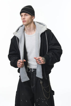 ユニセックス 着脱式レイヤードベースボールフーディジャケット