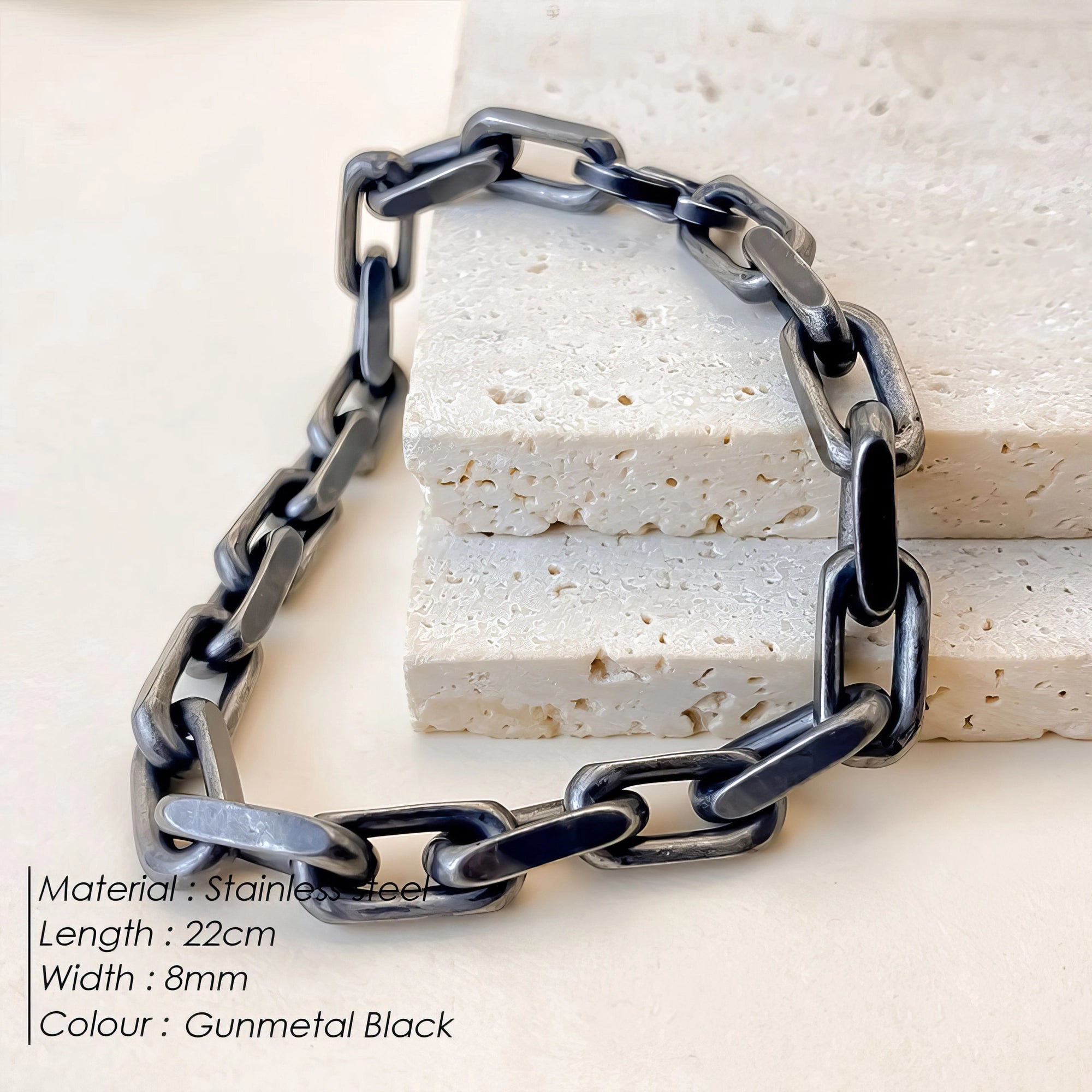 Industrial Style 8mm Cuban Chain Bracelet with Square Lock