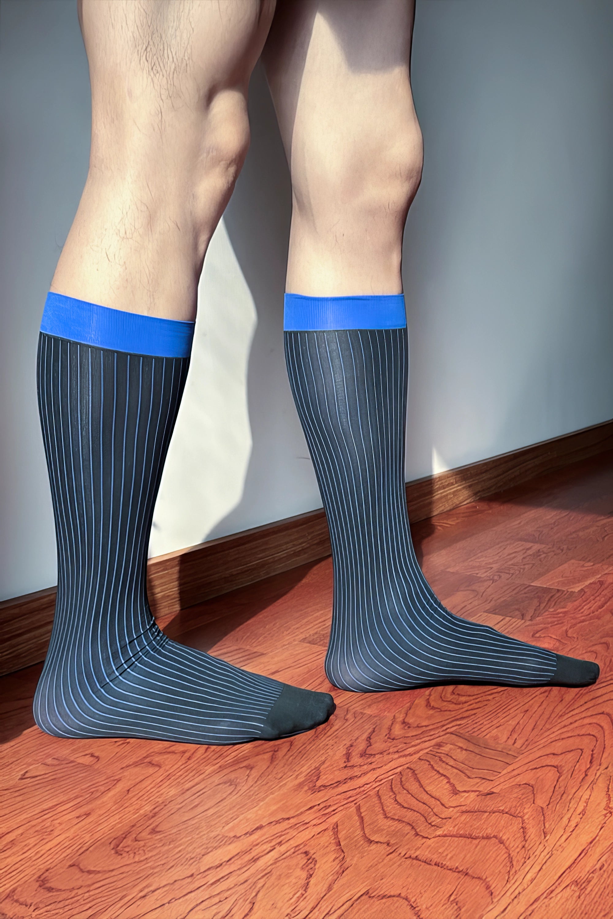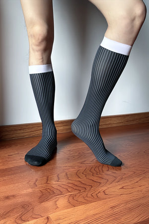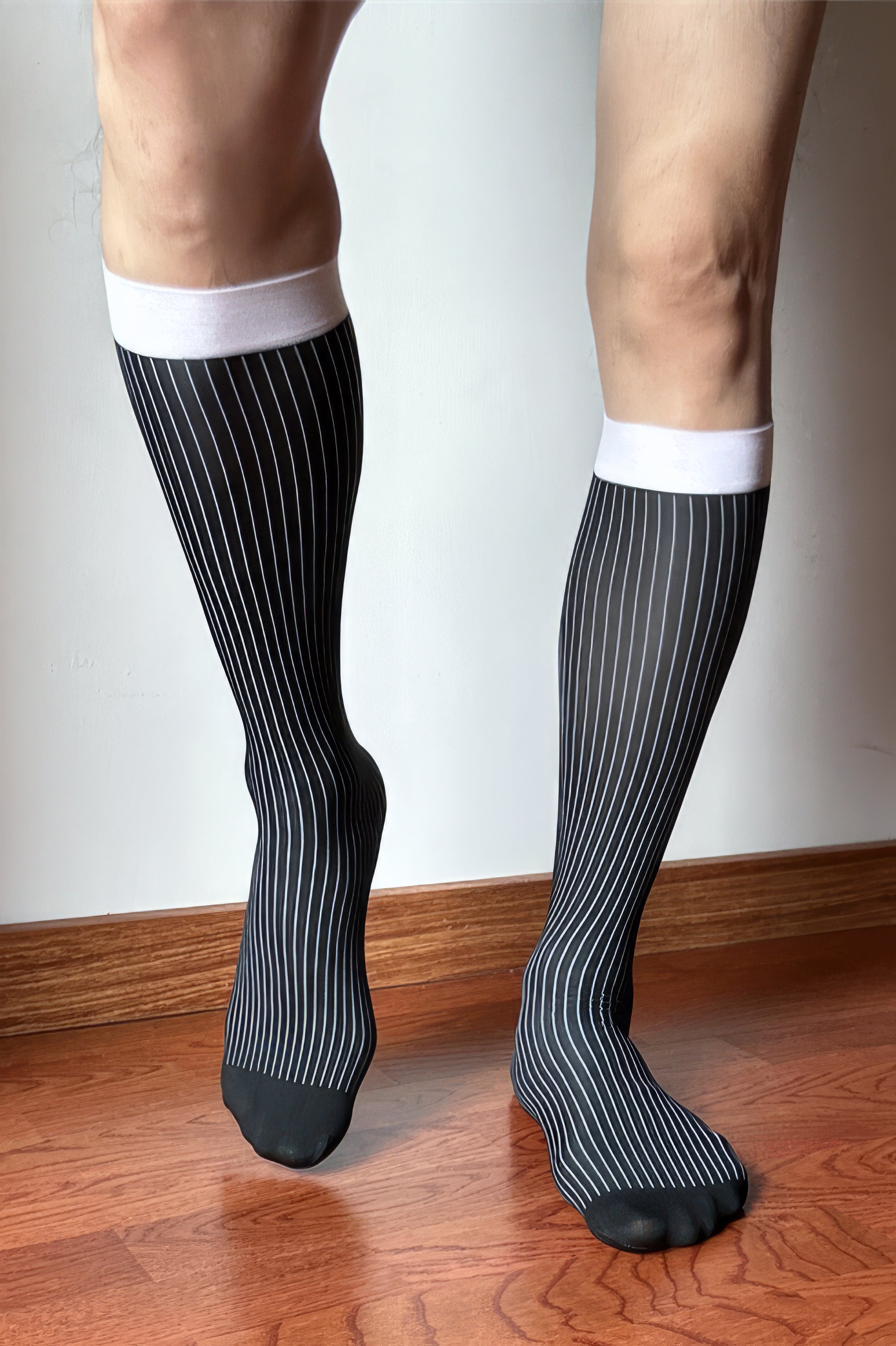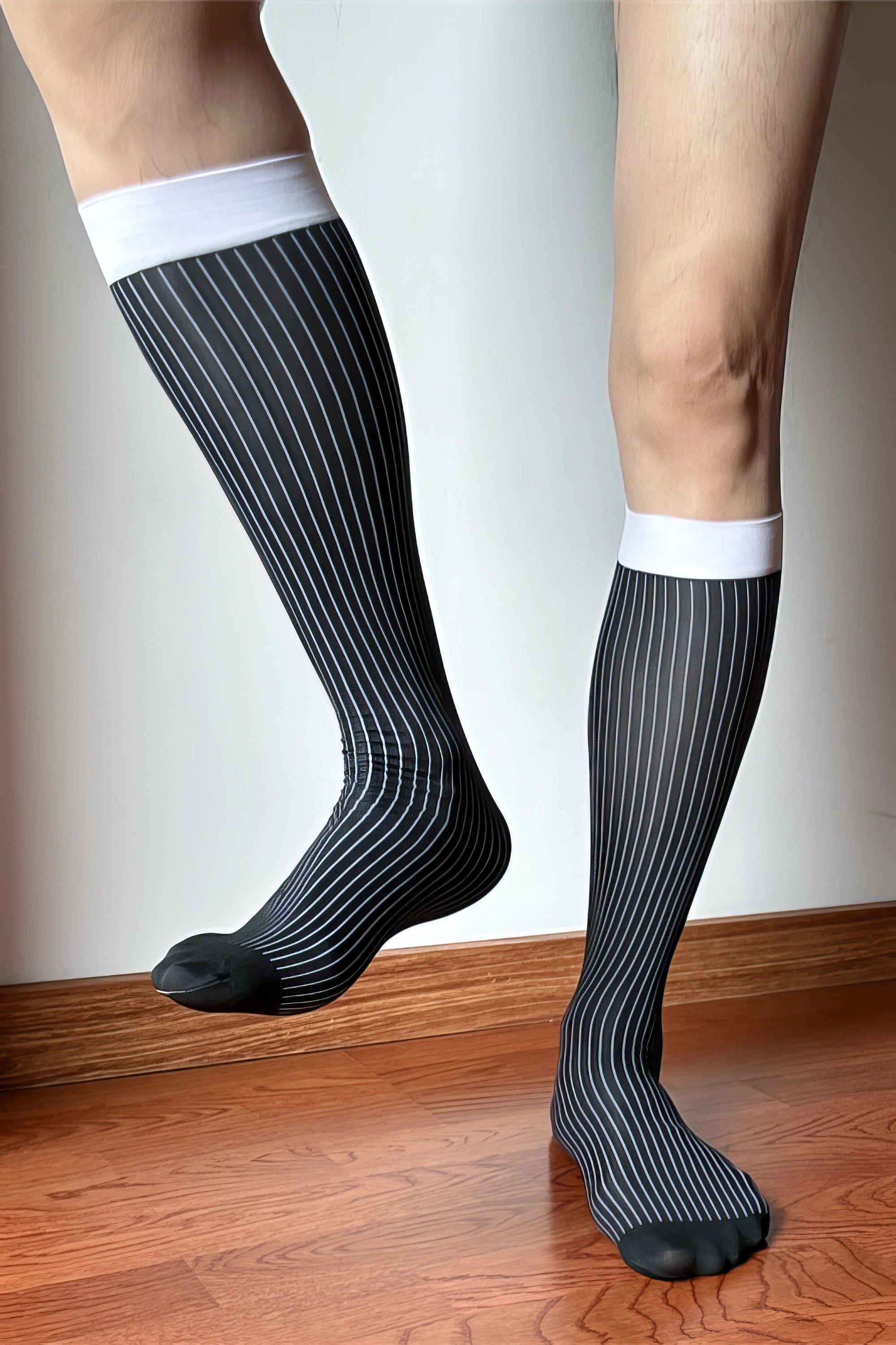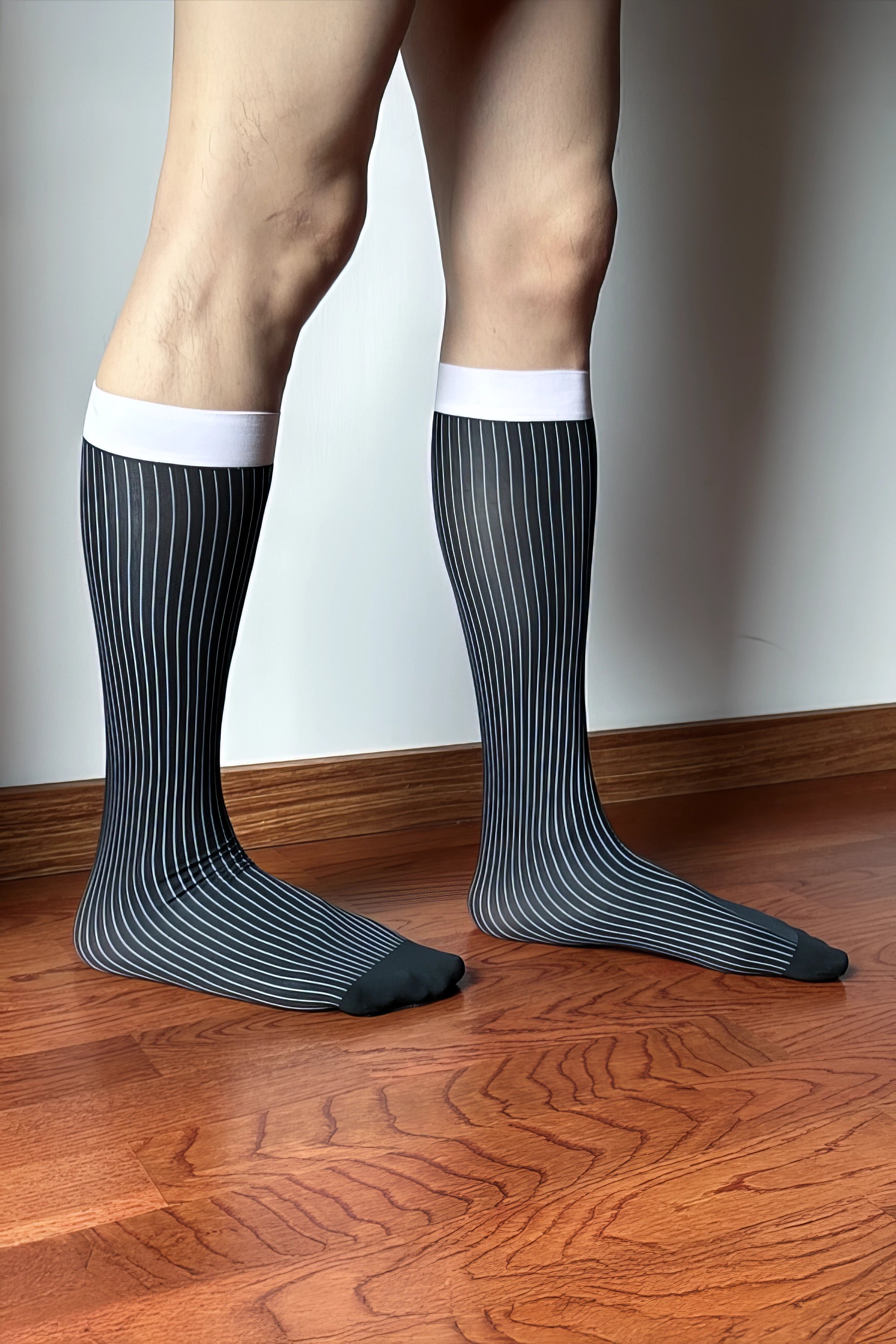 Men’s Mid-Calf Dress Socks - Minimalist Striped Nylon
