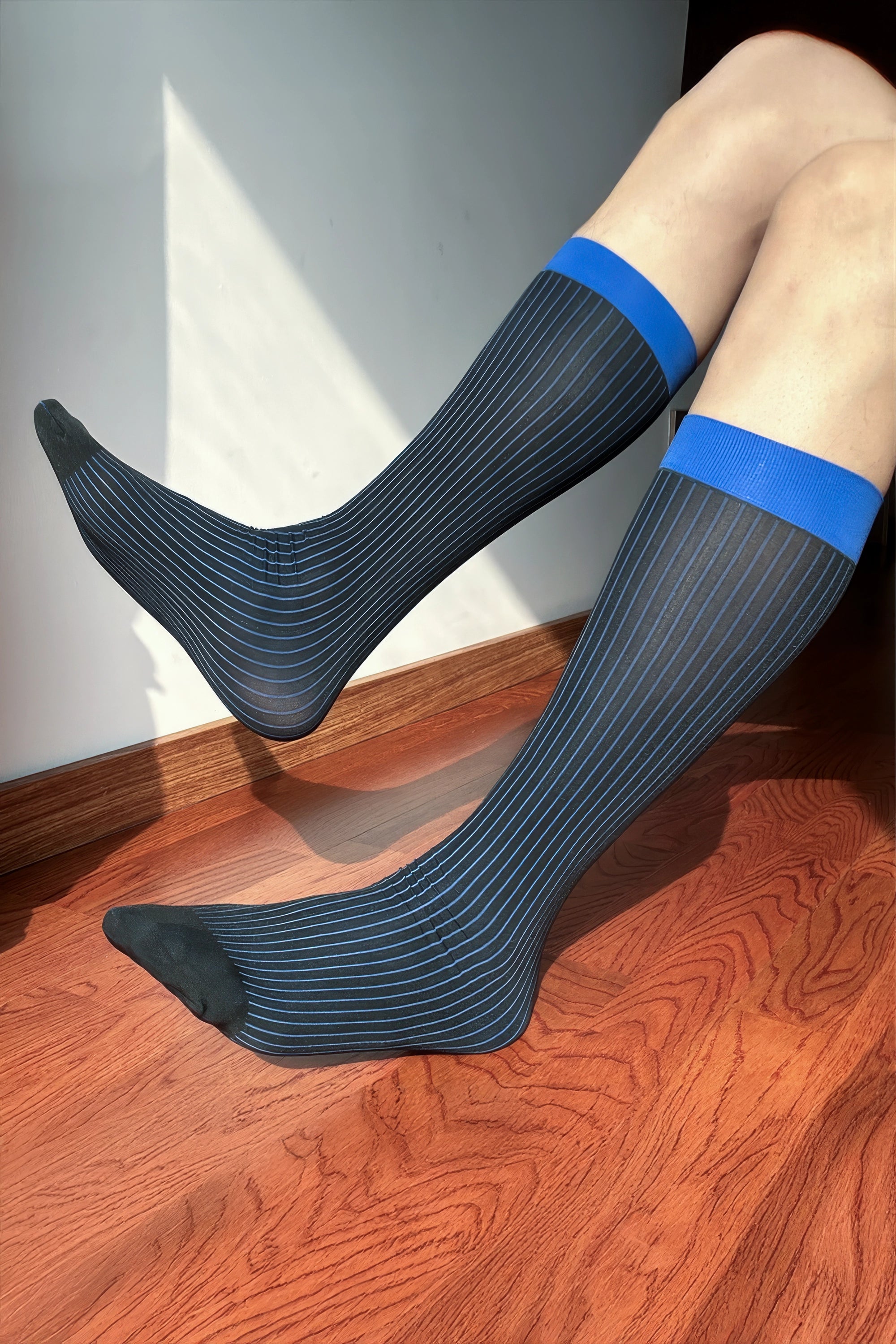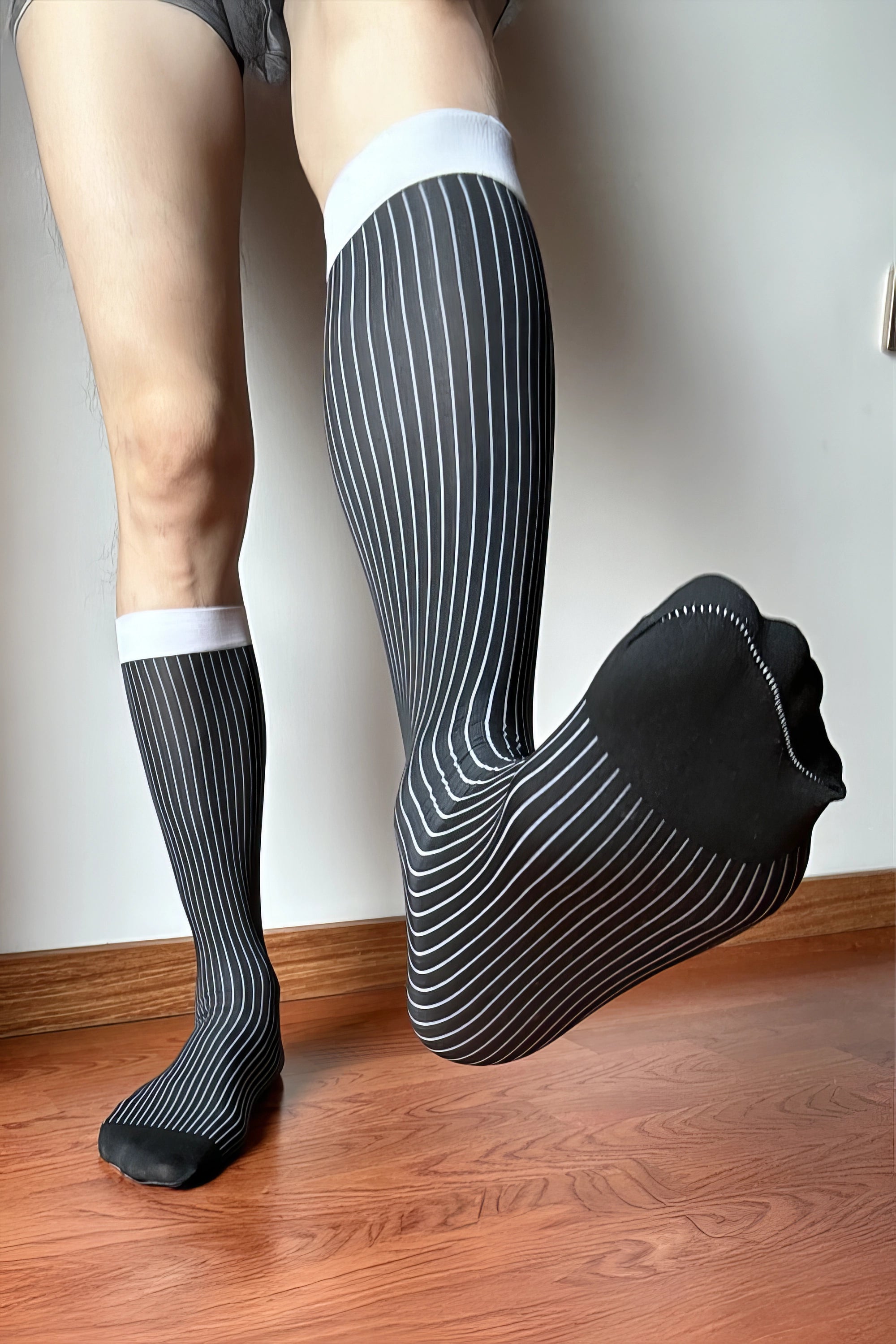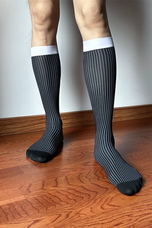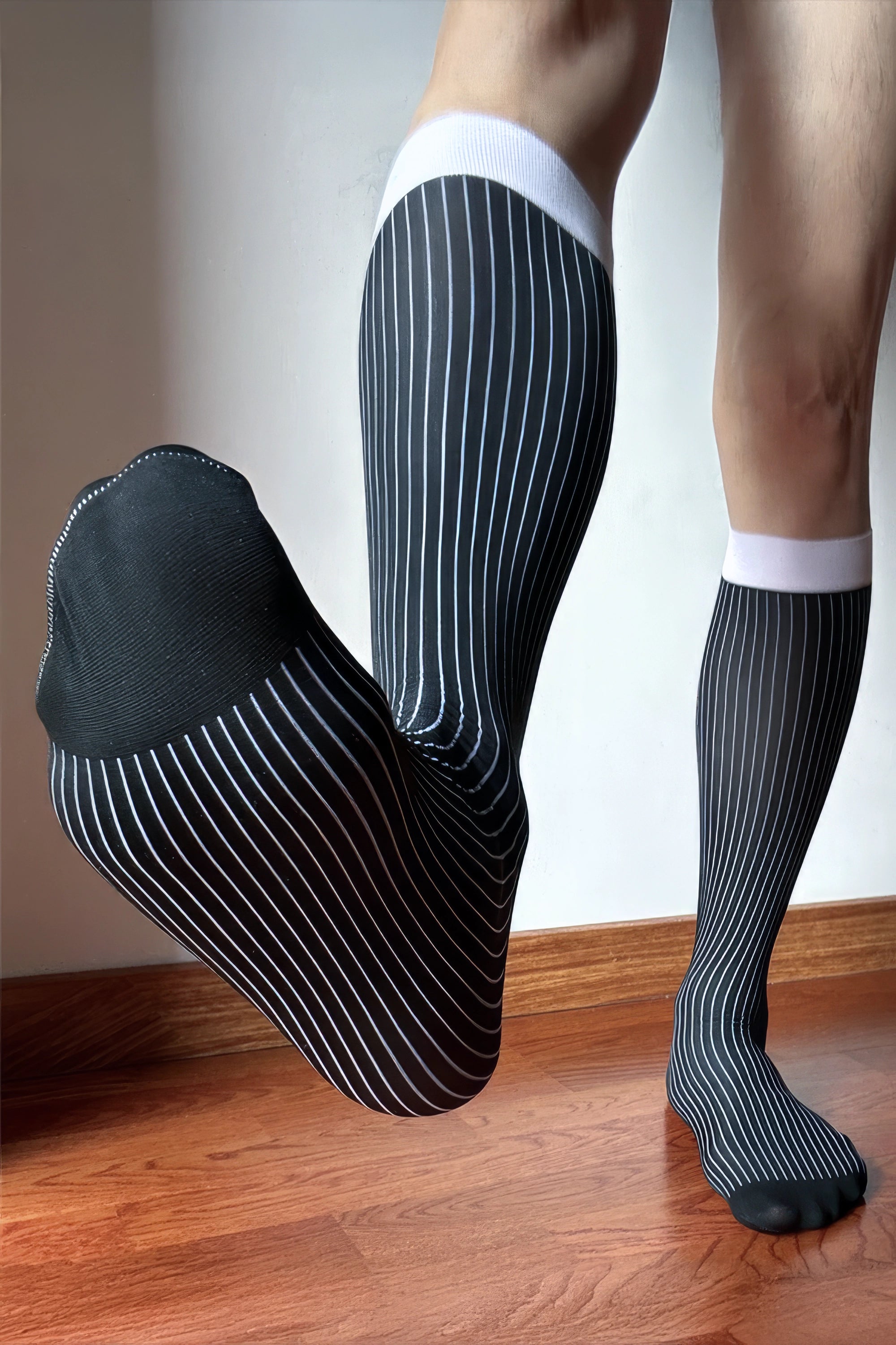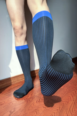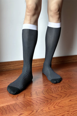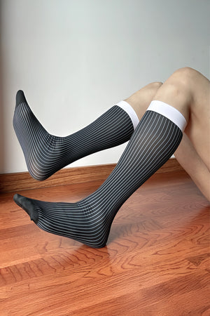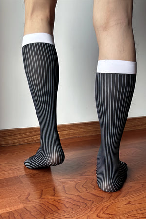 Men’s Mid-Calf Dress Socks - Minimalist Striped Nylon