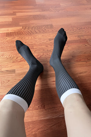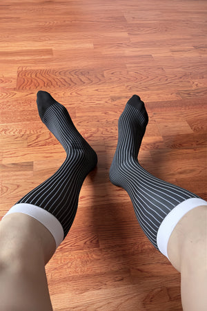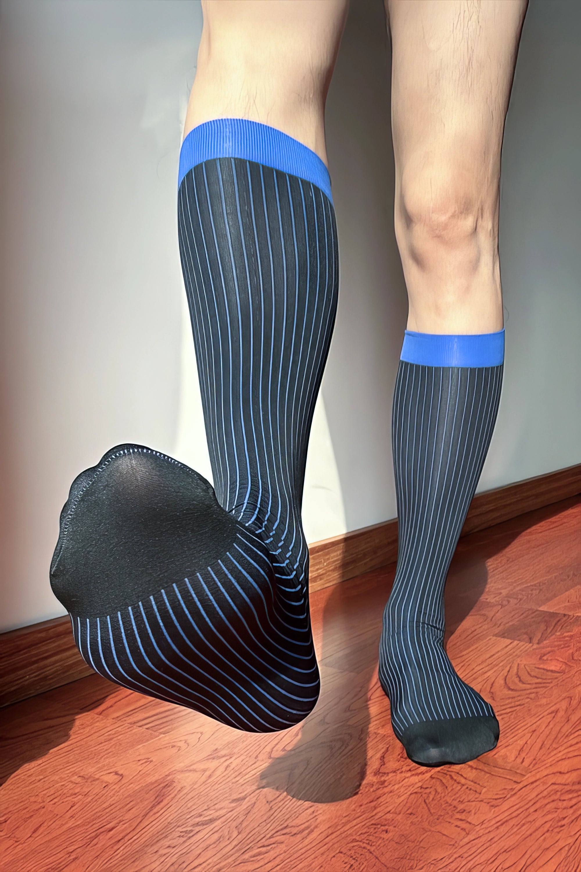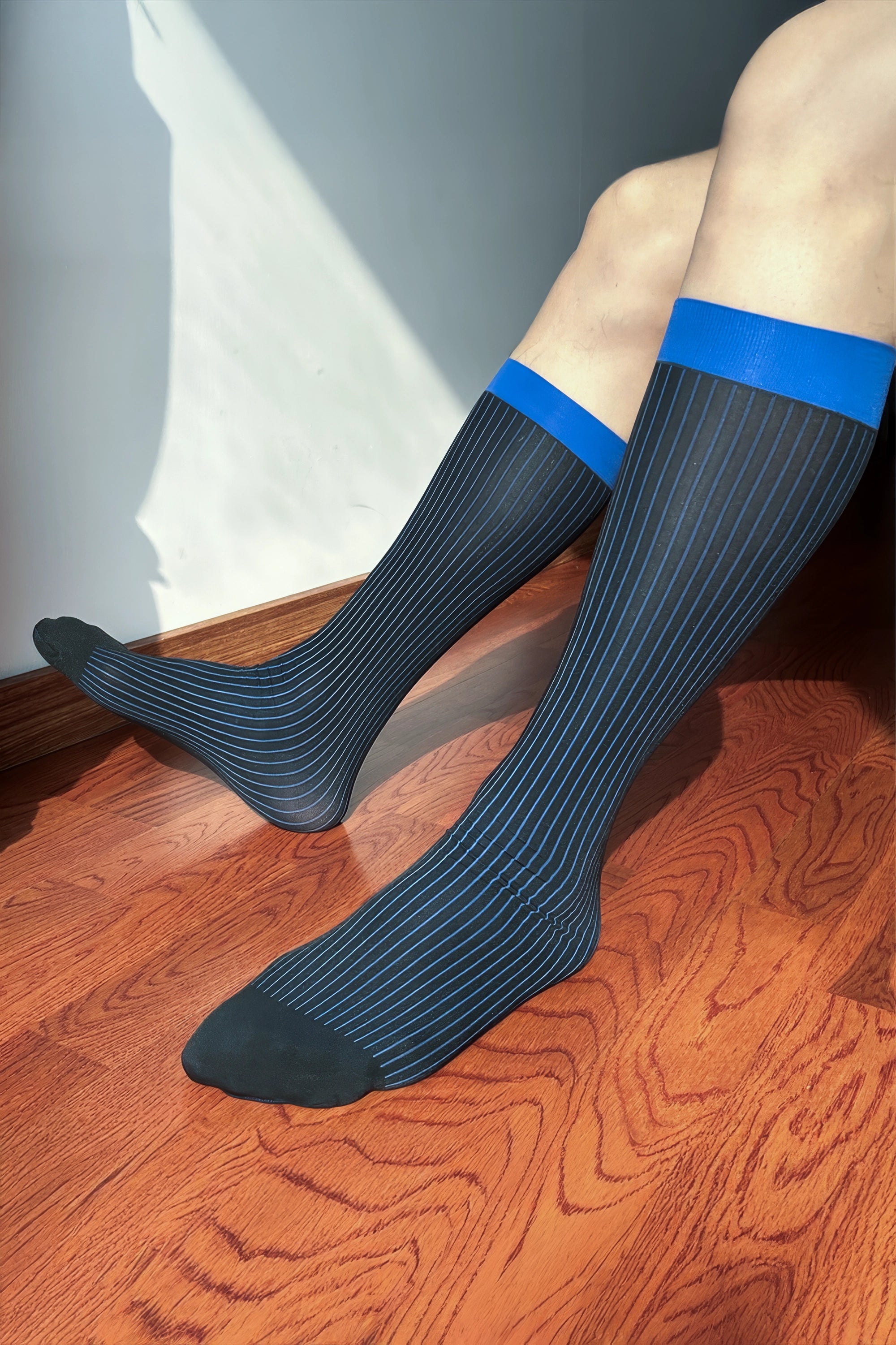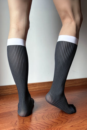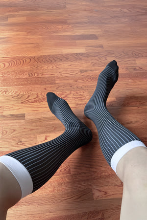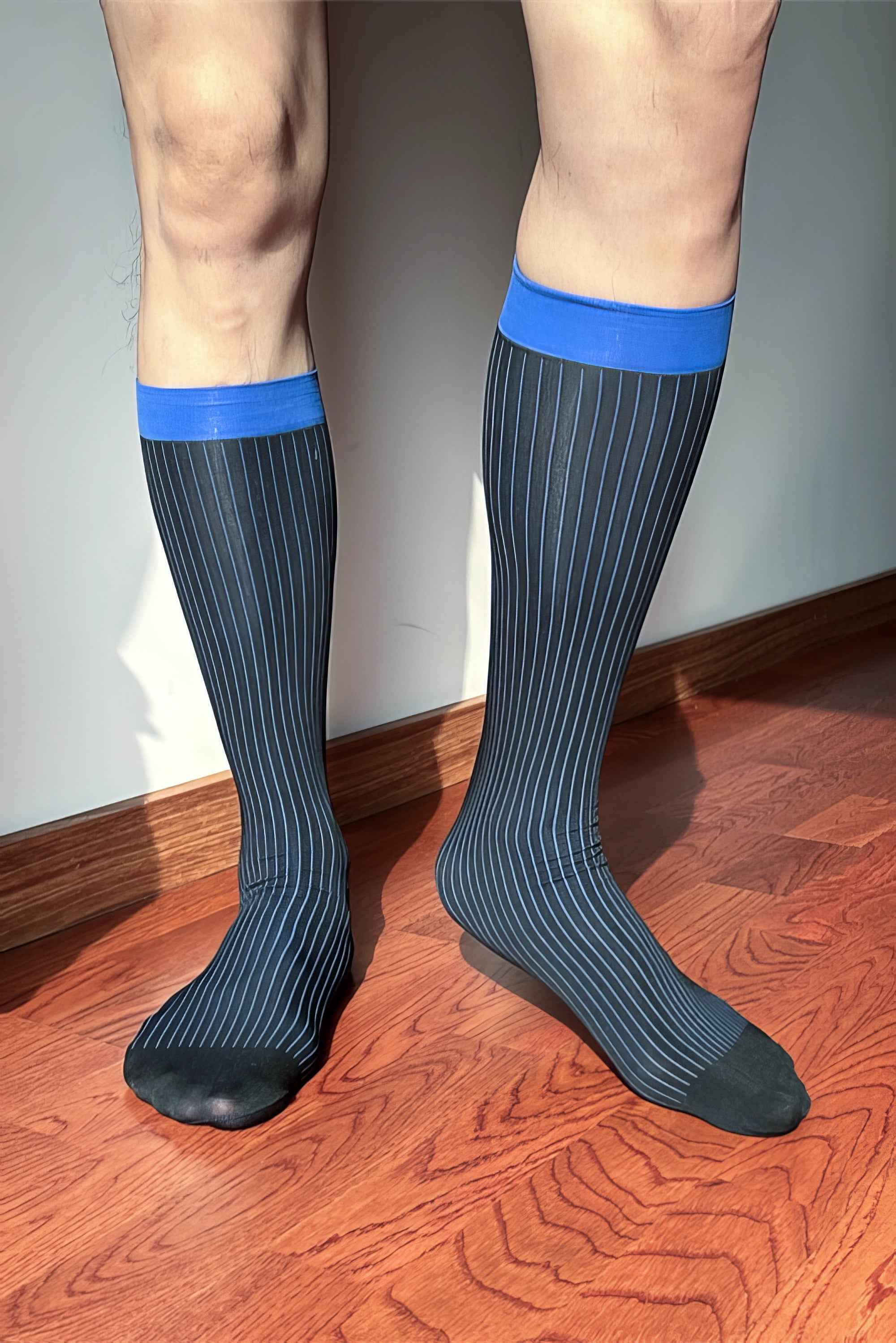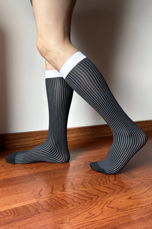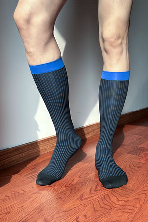 Men’s Mid-Calf Dress Socks - Minimalist Striped Nylon