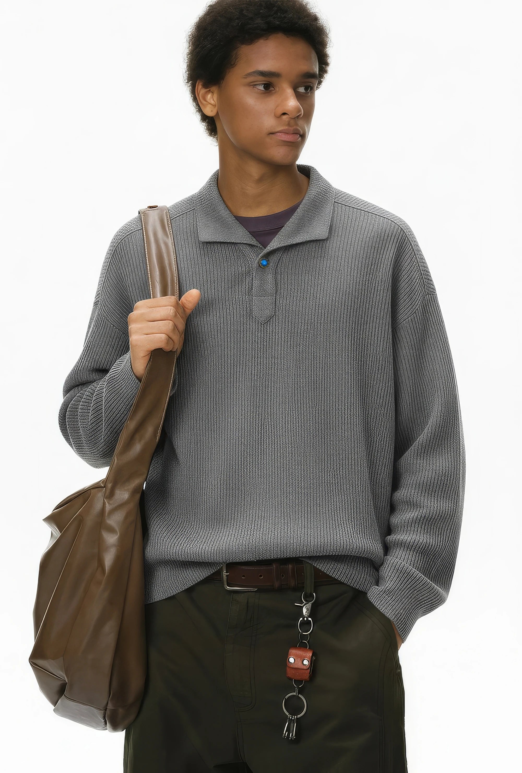 Vintage Italian Polo Shirt - Long Sleeve, Loose Fit, Classic Collared